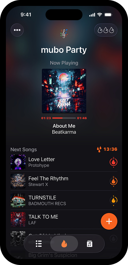 With mubo, your guests vote for the next song directly from their phones. The most voted track plays next.
